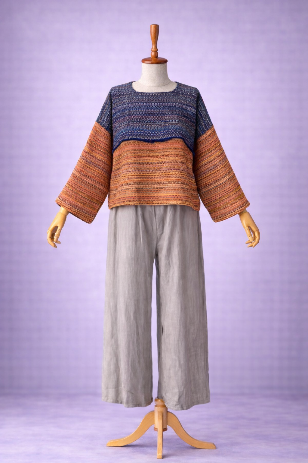 Turuncu Patchwork Dokuma Kadın Bluz – Tek Üretim, %100 Pamuk, Sürdürülebilir Tasarım