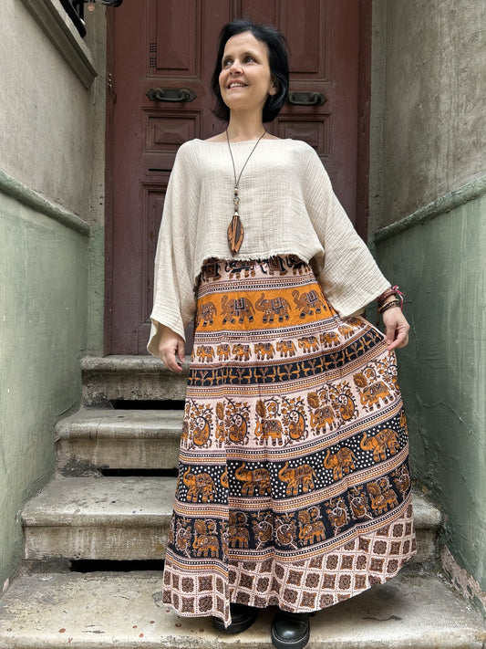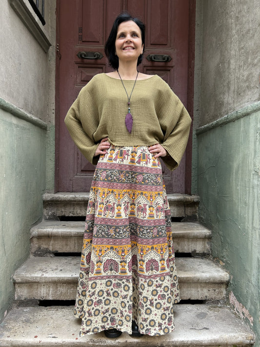 Sold outBohem Bol Haki Hayvan Desenli Etek