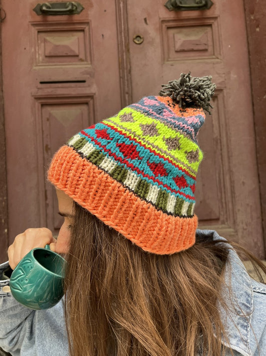 Bohem El Örgüsü Kışlık Bere – Pamuk & Yün Karışımlı
