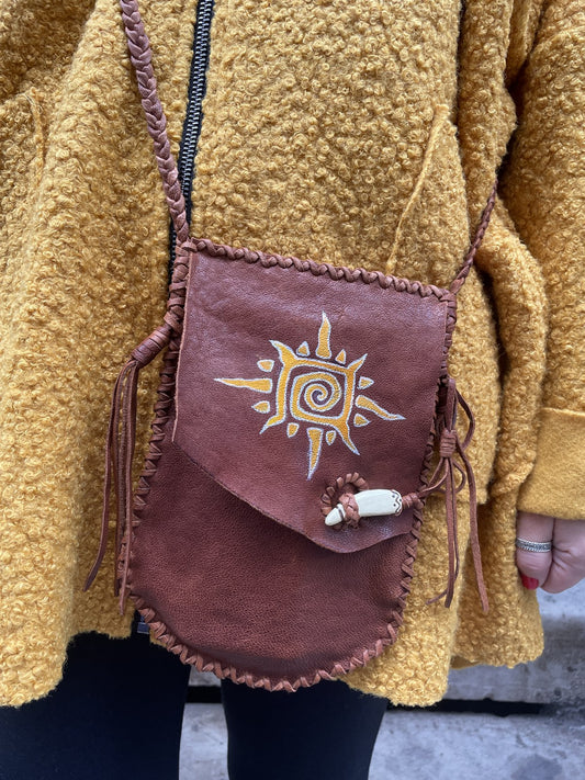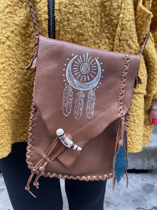 Bohemian Handmade Genuine Leather Aboriginal Symbol Bag