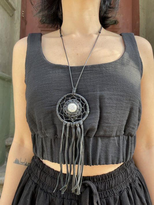 Bohem Festival Tasarım Deri Doğal Taş Kolye