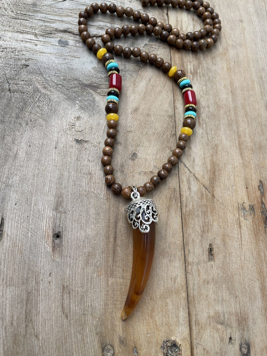 Bohem Fil Dişi Ahşap Doğal Taş Mala Kolye