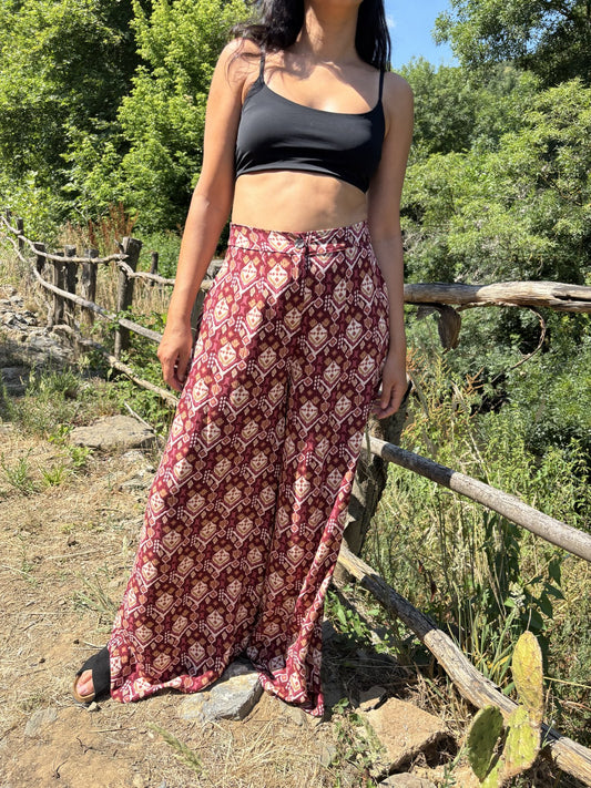 Bohem Kadın Yırtmaçlı Bol Paça Pantolon - Pamuklu, 2 Renk