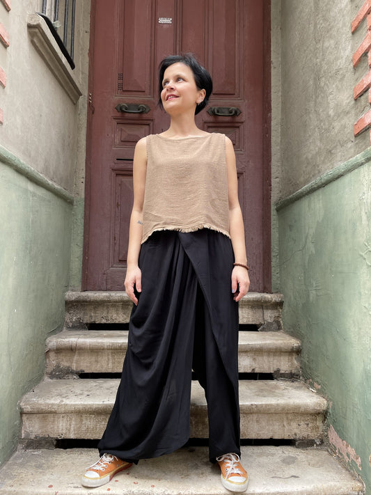 Bohem Kadın Yazlık Kolsuz Crop Pamuklu Bluz – Rahat Kalıp, Bedenli