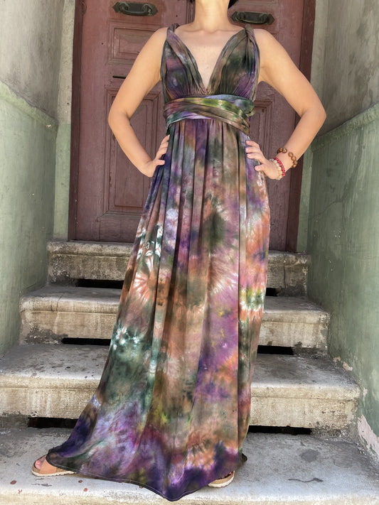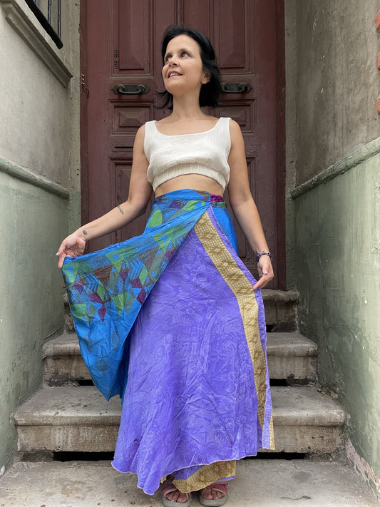 Bohem Mavi Mor Çift Taraflı Bağlamalı İpek Etek