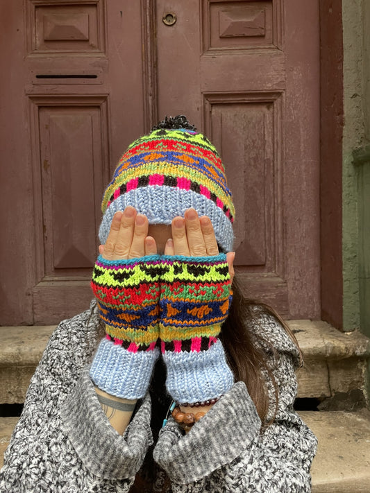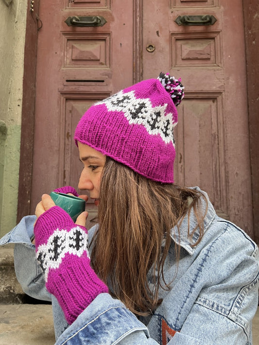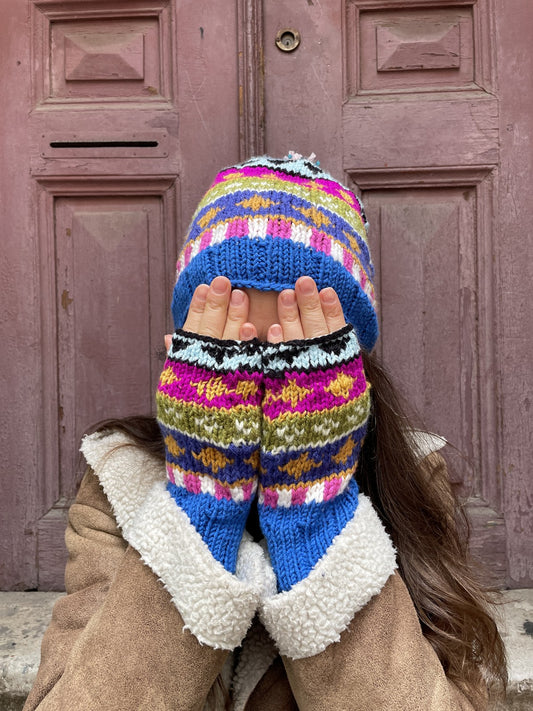 Bohem Mavi Mor Yün Bere Eldiven Takımı
