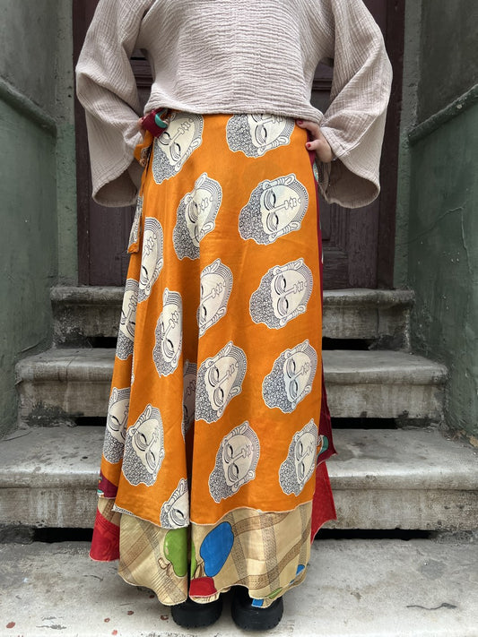Bohem Nepal Buddha Desenli Bağlamalı İpek Etek
