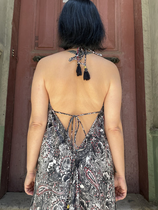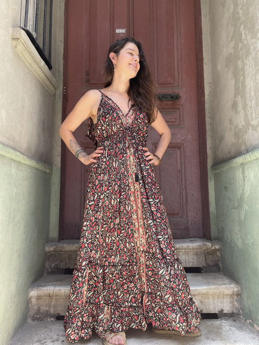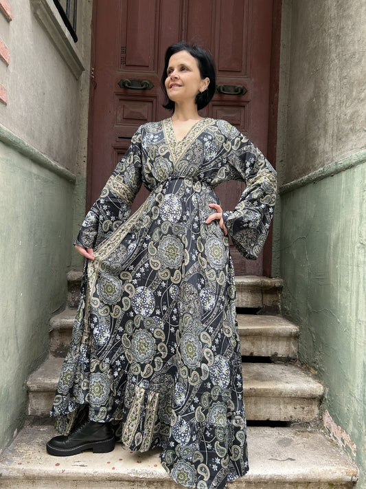 Sold outBohem Nepal Siyah İpek Elbise