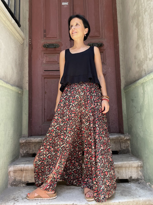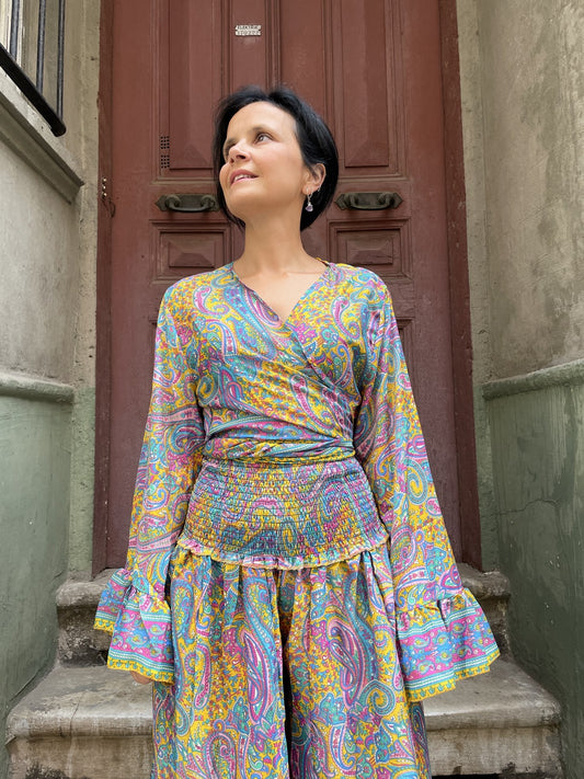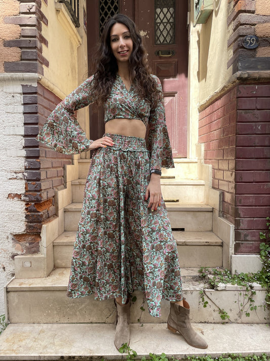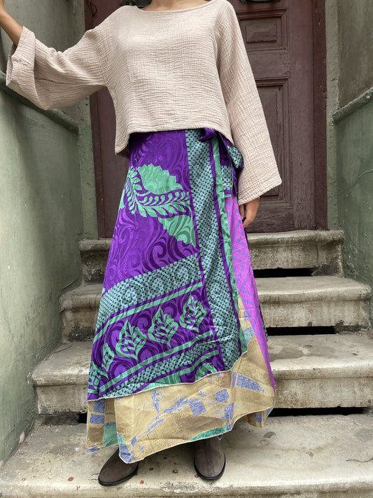 Bohem Nepal Mor Desenli Bağlamalı İpek Etek