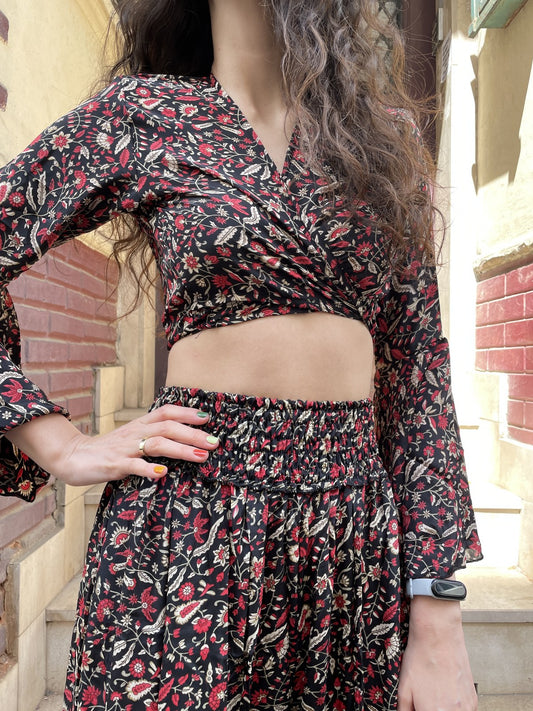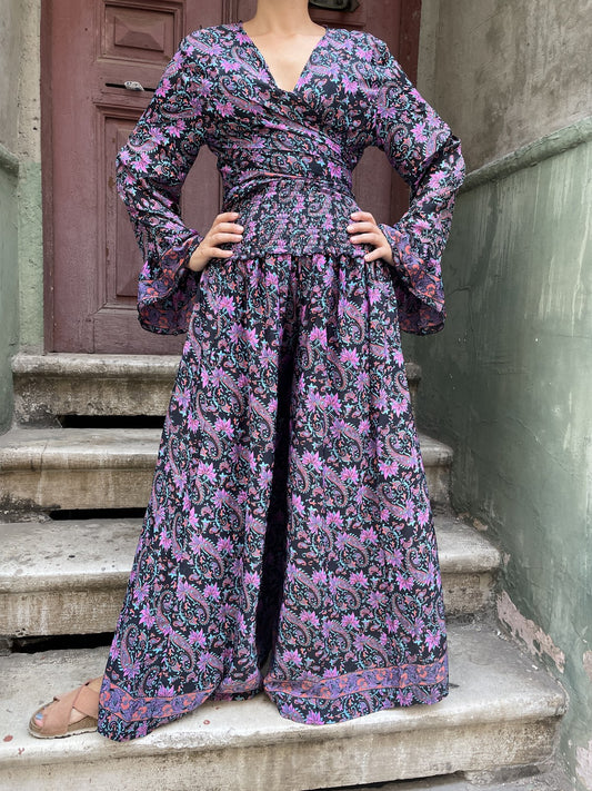 Bohem Nepal Mor Siyah İpek Bolero Takımı
