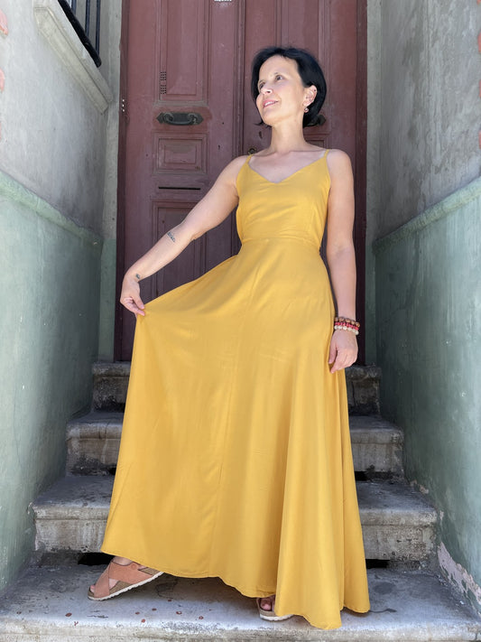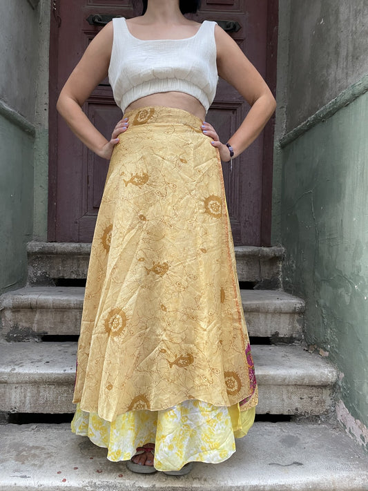 Bohem Sarı Hardal Çift Taraflı Bağlamalı İpek Etek