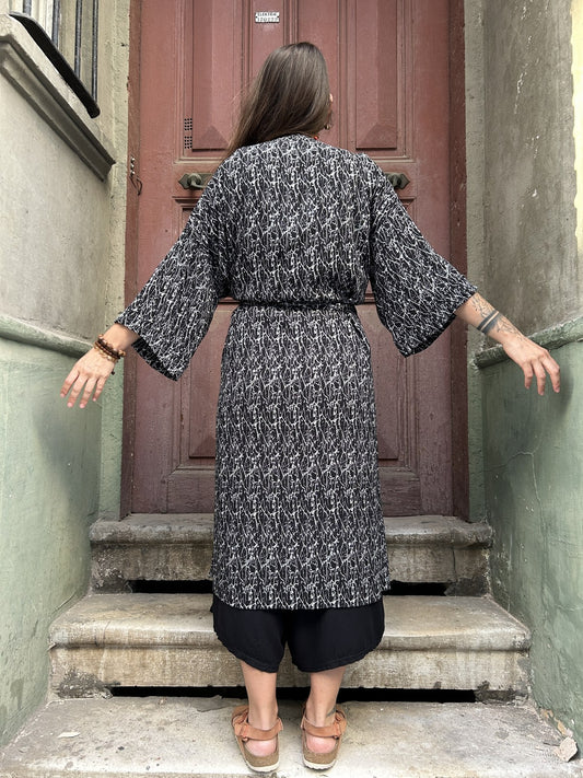 Sold outBohem Siyah Beyaz Desenli Kimono