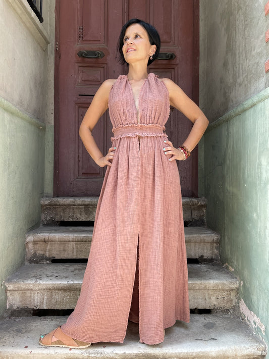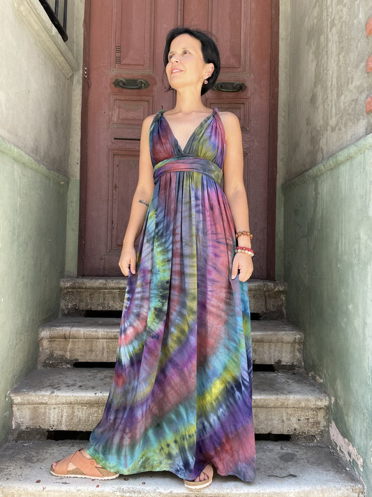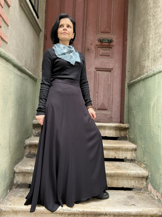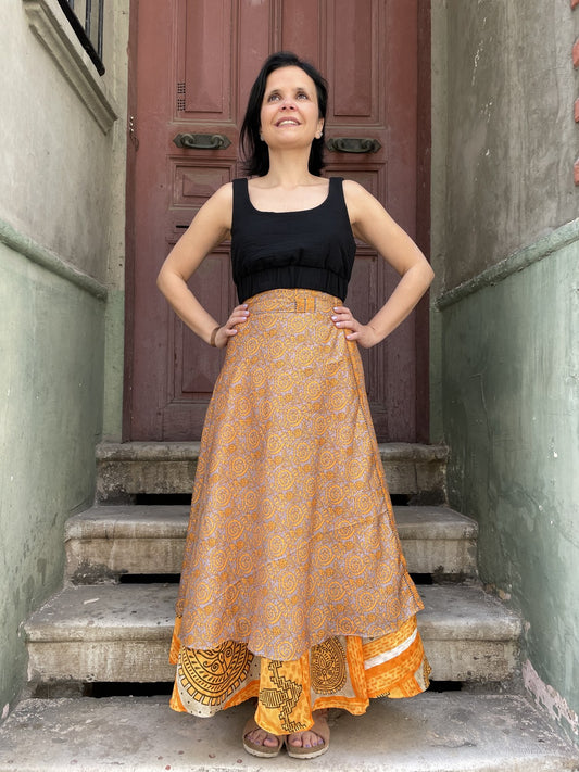 Bohem Sarı Kahve Çift Taraflı Bağlamalı İpek Etek