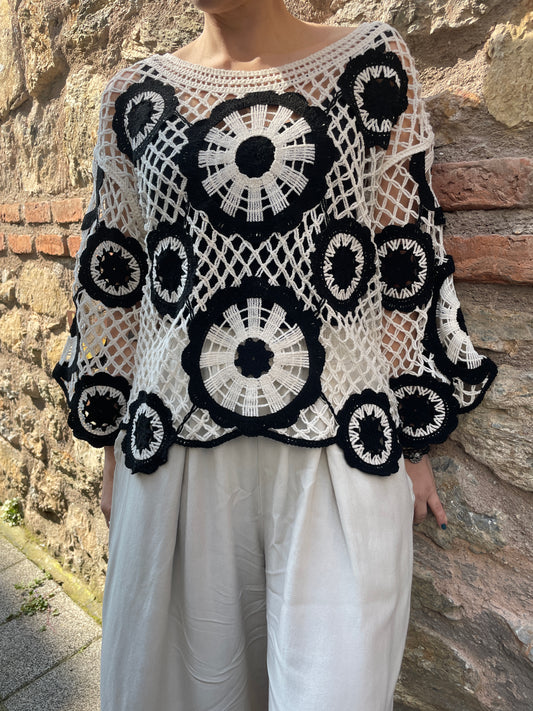 Sold outBohem Siyah Beyaz Örgü Bluz