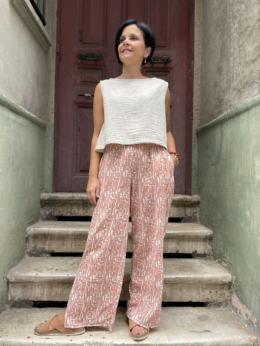 Bohem Şile Bezi Desenli Salaş Kadın Pantolon