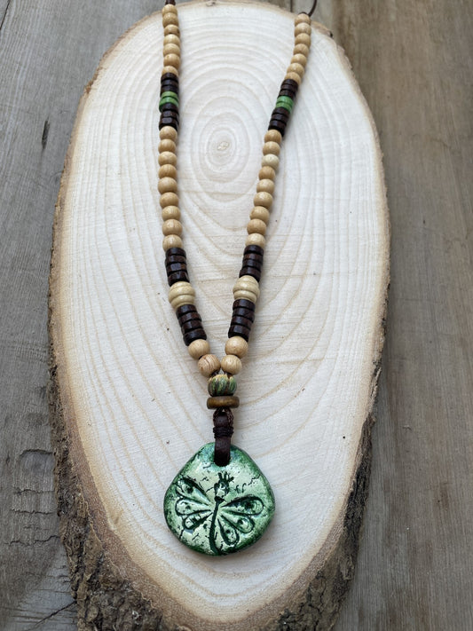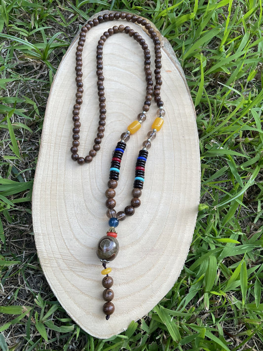 Bohem Tibet Akik Ahşap Doğal Taş Mala Kolye
