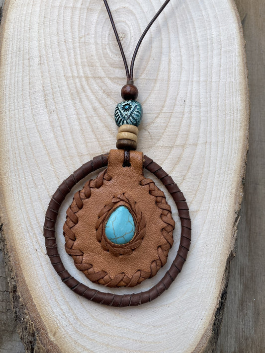 Bohem Tasarım Siggy Doğal Taş Deri Kolye
