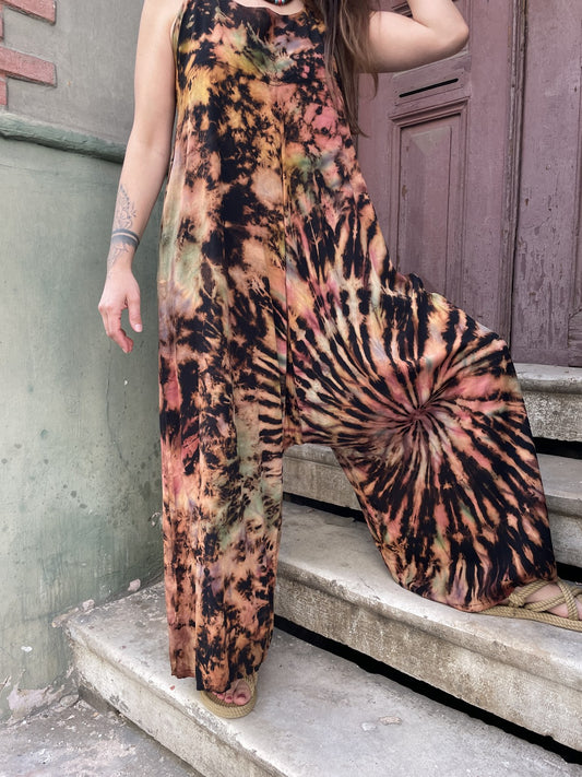 Bohem Toprak Kadın Batik Tulum, Siyah Salaş Tulum