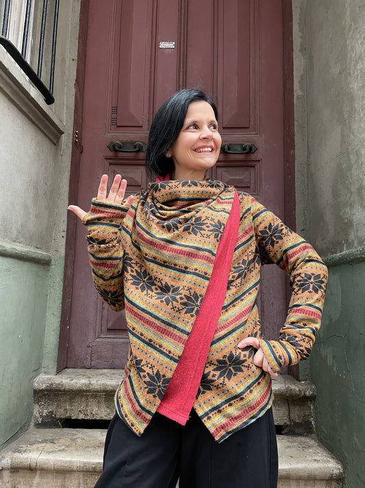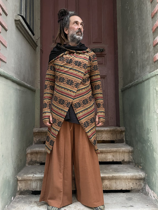 Bohem Toprak Kısa Dökümlü Yaka Etnik Desenli Hırka Bluz