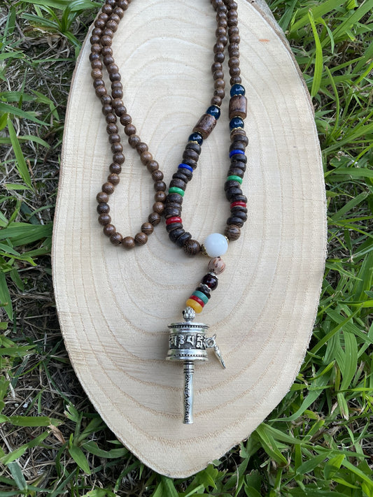 Bohem Tibet Çanı Ahşap Doğal Taş Mala Kolye