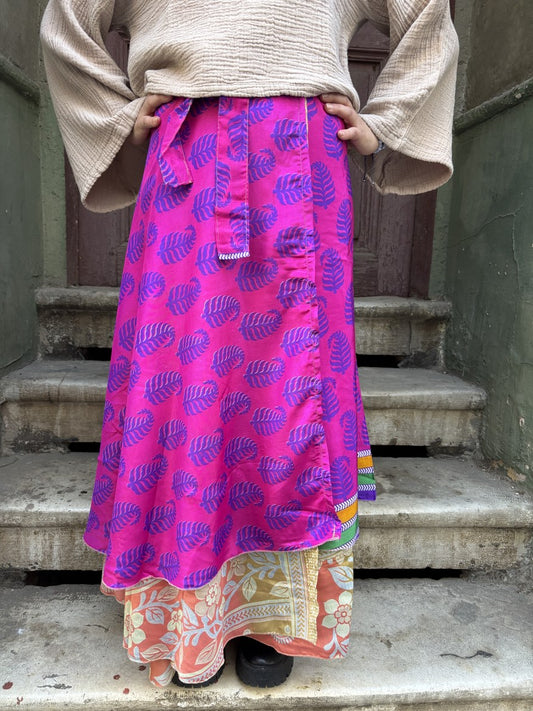 Çift Taraflı Nepal İpek Etek – Pembe Turuncu El Yapımı & Bohem Stil