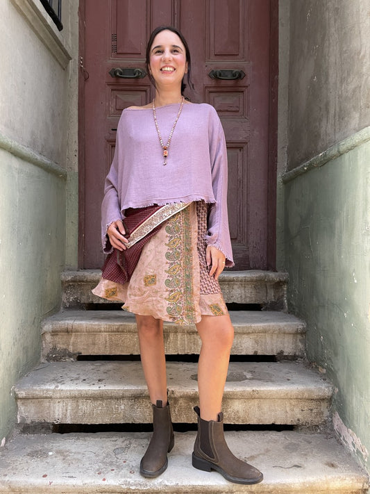 Çift Taraflı Kısa İpek Etek – El Yapımı, Desenli ve Hafif
