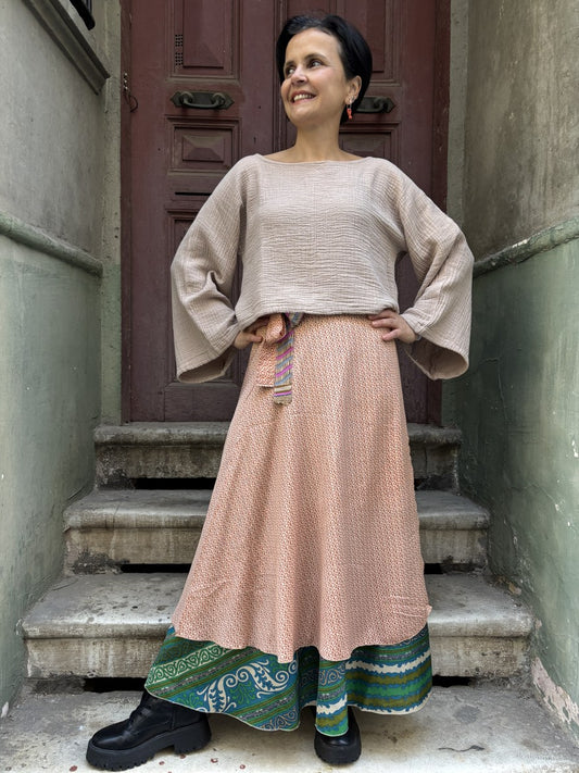 Çift Taraflı Nepal İpek Etek – Bej Bohem Tarz