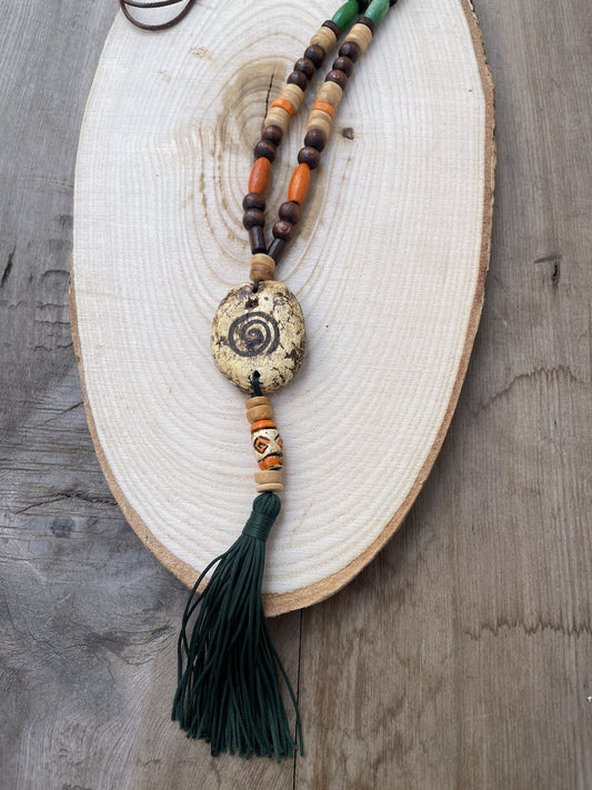 Dönüşüm Seramik Ahşap Doğal Tas Mala Kolye