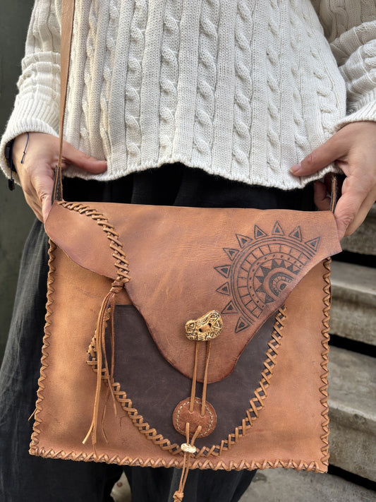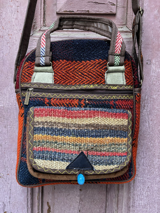 El Yapımı Kilim Çanta - Ayarlanabilir Saplı, Etnik Tasarım - Toprak