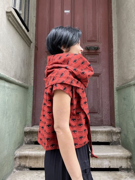 Gül Kurusu Bohem Kadın Göz Desenli Doğal Kumaş Kimono Bornoz Kaftan
