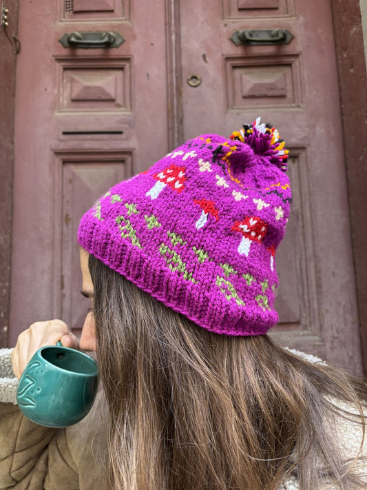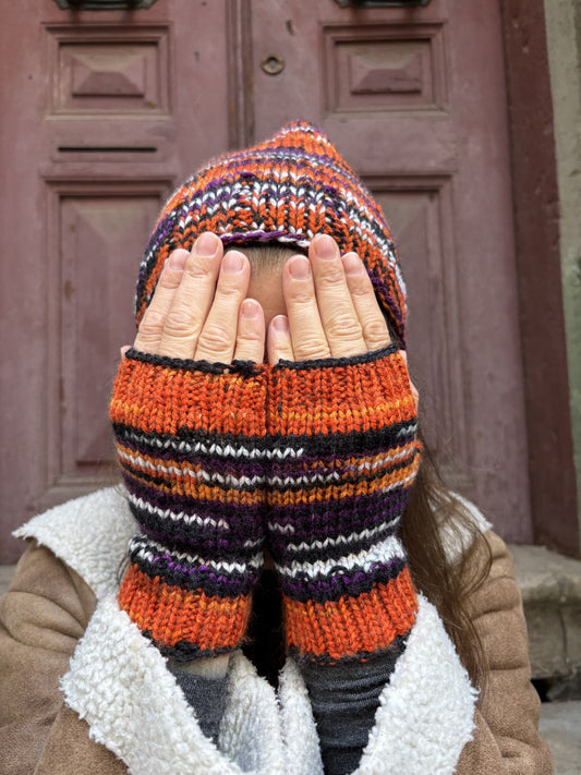Bohem Kiremit Mor Yün Bere Eldiven Takımı