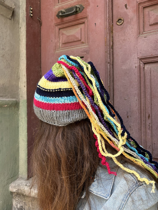 Renkli Bob Marley Rastalı Bere - El Yapımı Boho Tarz - Gri Sarı