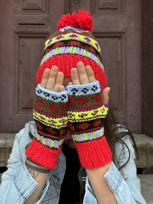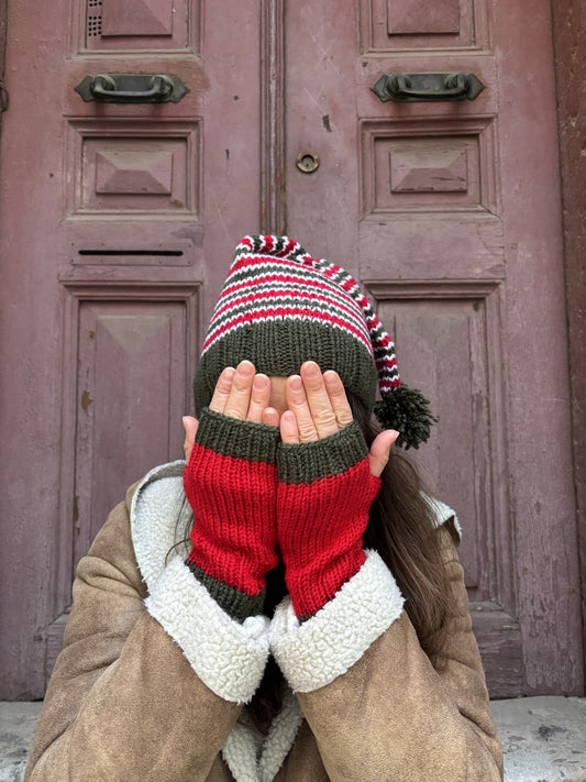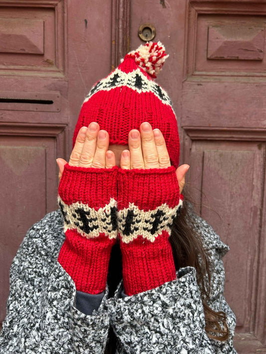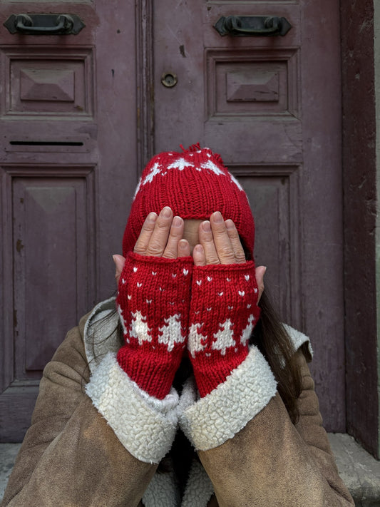 Bohem Kırmızı Yılbaşı Bere Eldiven Takımı