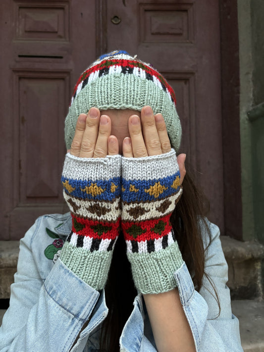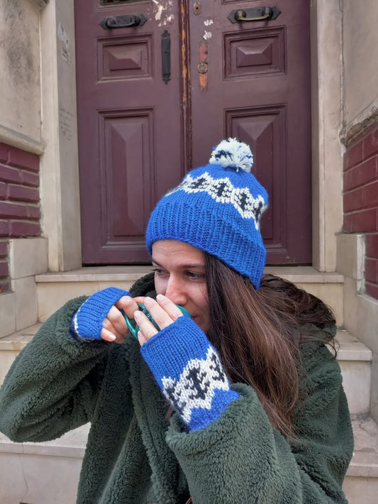 Bohem Mavi Mor Yün Bere Eldiven Takımı