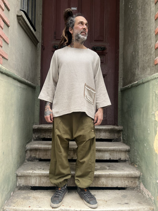 Avelon Tasarım Dokuma Erkek Bluz – %100 Pamuk, Sürdürülebilir