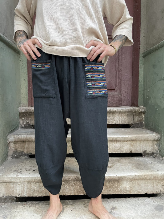 Unisex El Yapımı Nepal Kadın Baskılı Pamuk Pantolon – Siyah