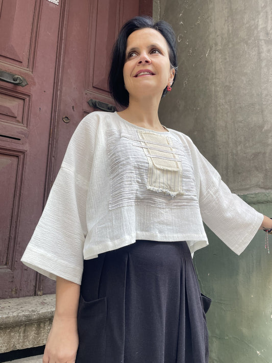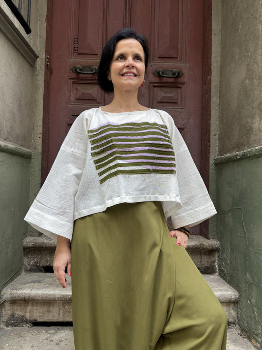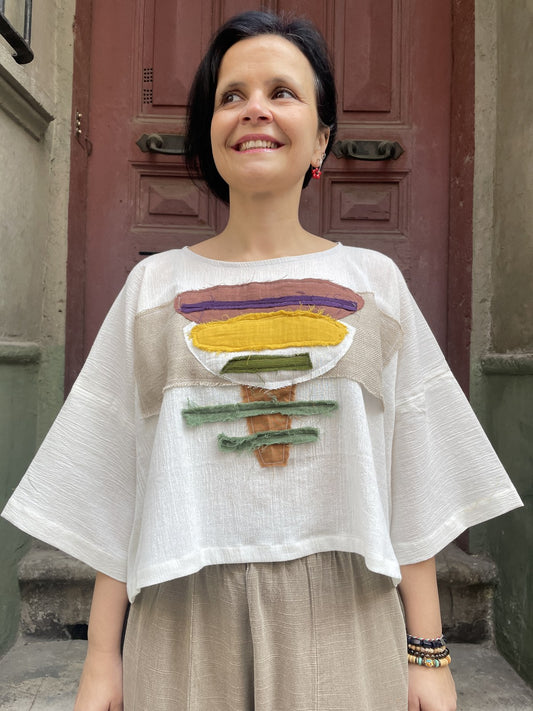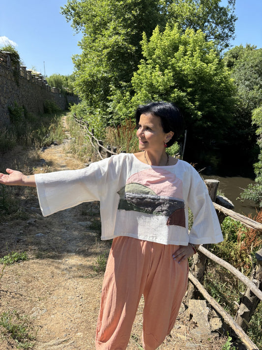 Batik Müslin Bluz – “Luna” | El Boyaması Bohem Tasarım
