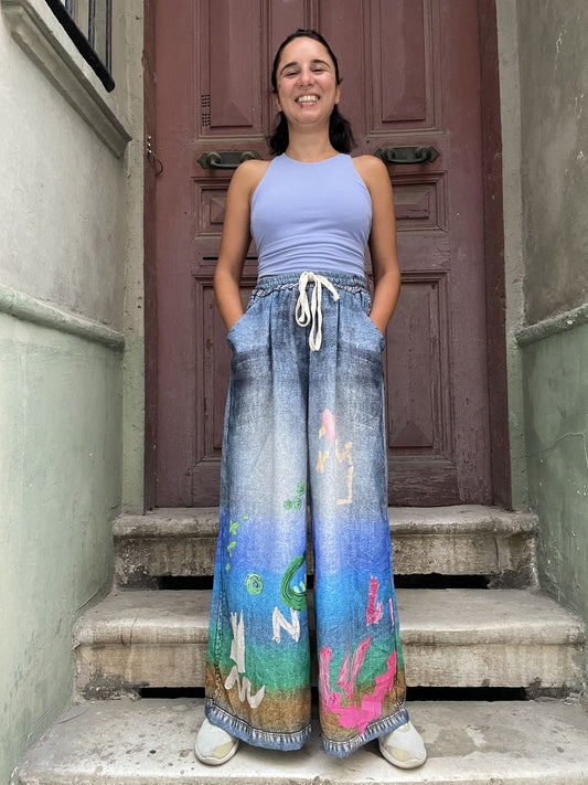 Bohem Kadın Jean Görünümlü Pantolon – Renk Geçişli Deniz Sualtı
