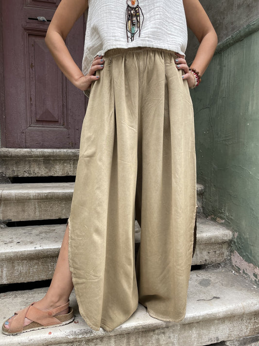 Bohem Lastik Bel Kahve Kadın Yoga Pantolonu