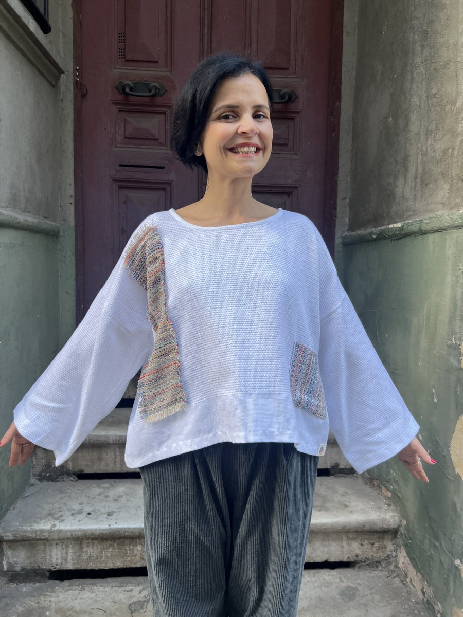 Almera Dokuma Kadın Bluz – Tek Üretim, %100 Pamuk, Sürdürülebilir Tasarım