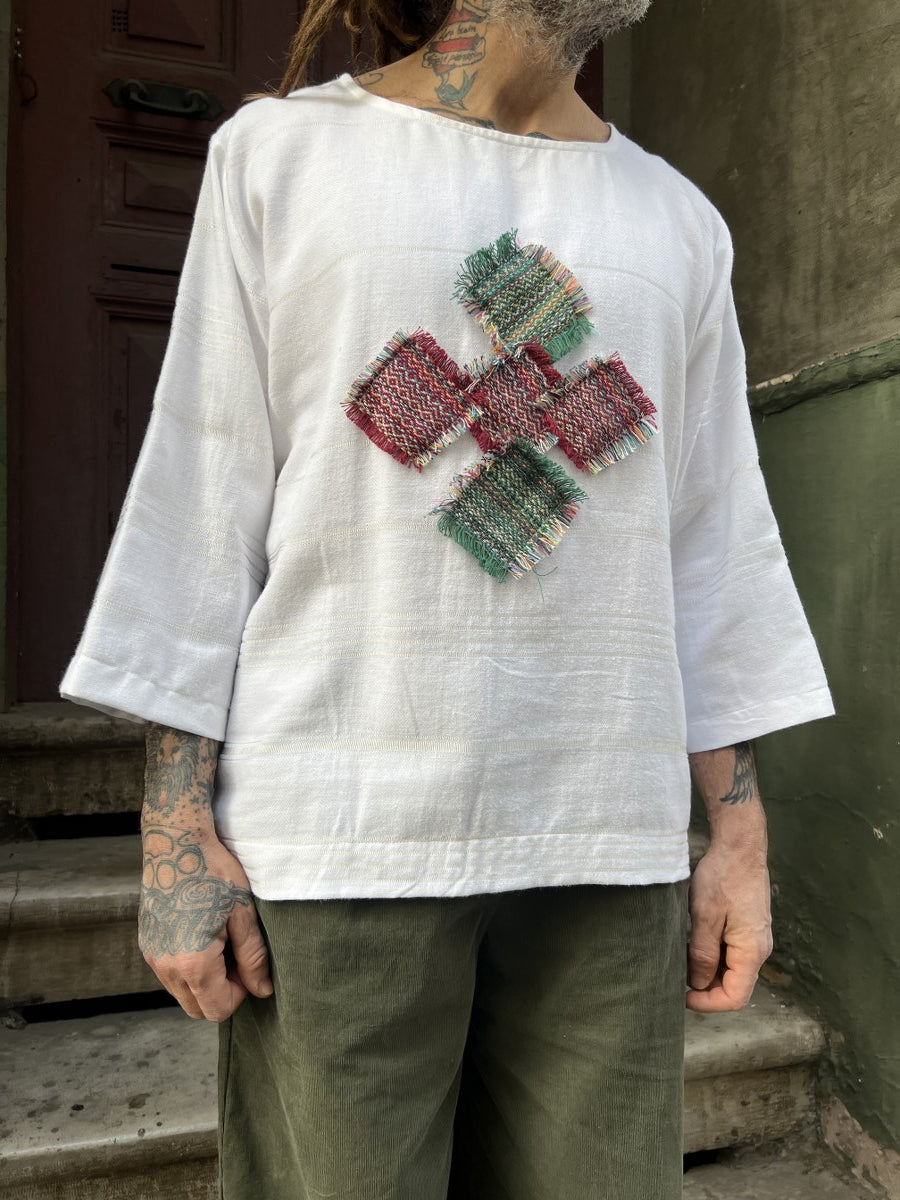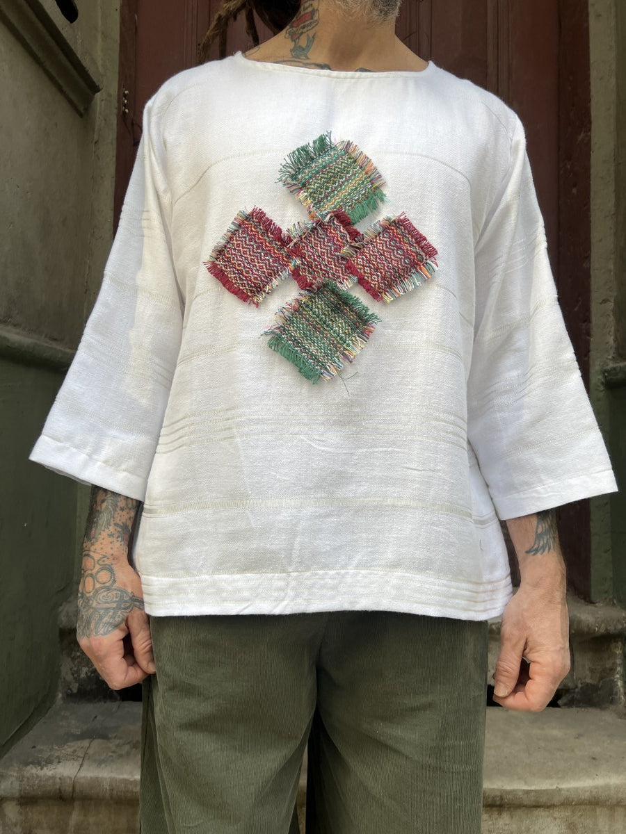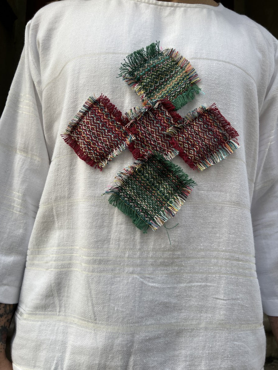 Arvion, tamamen doğal dokuma kumaştan üretilmiş, üzerinde yerel tezgâhlarda dokunan renkli patchwork parçalarının bir araya getirildiği tek üretim özel bir bluzdur.