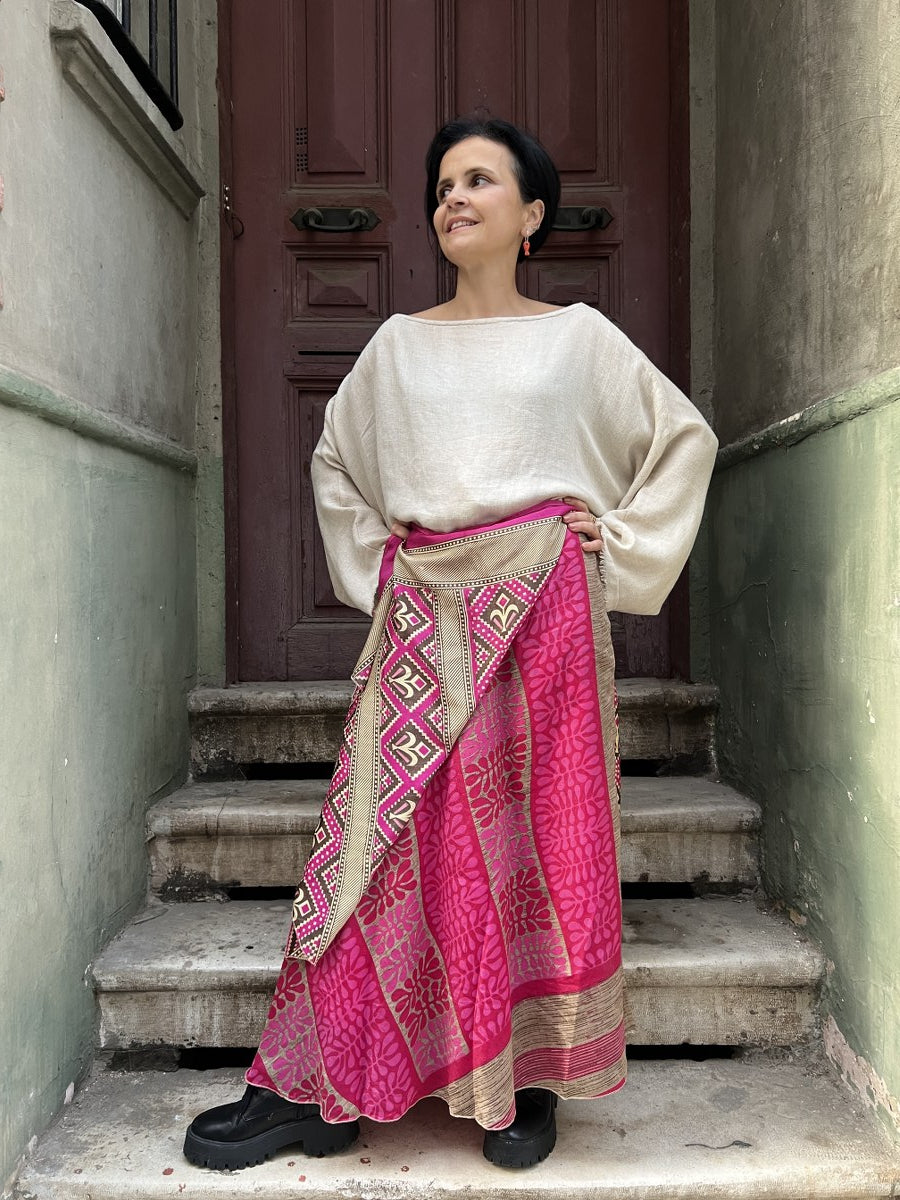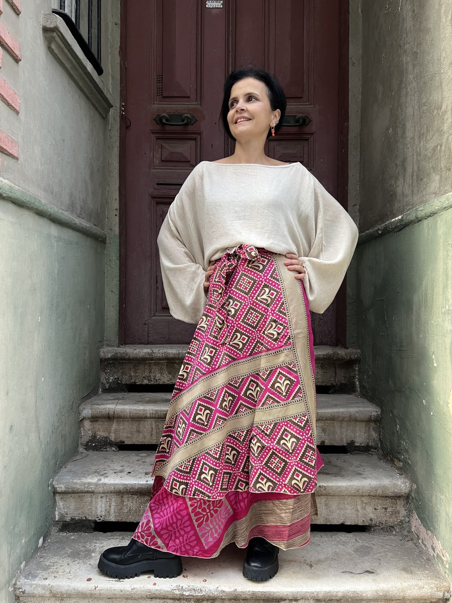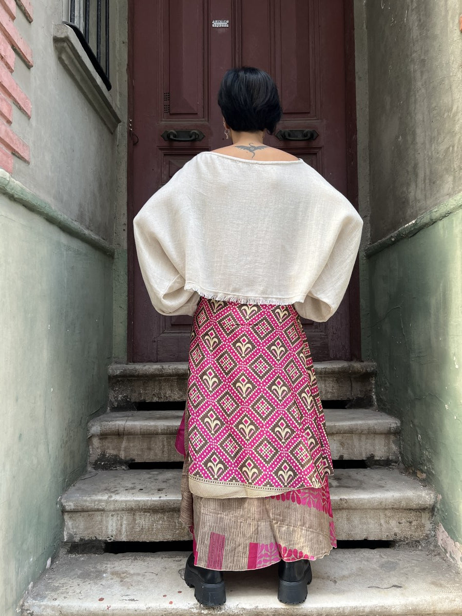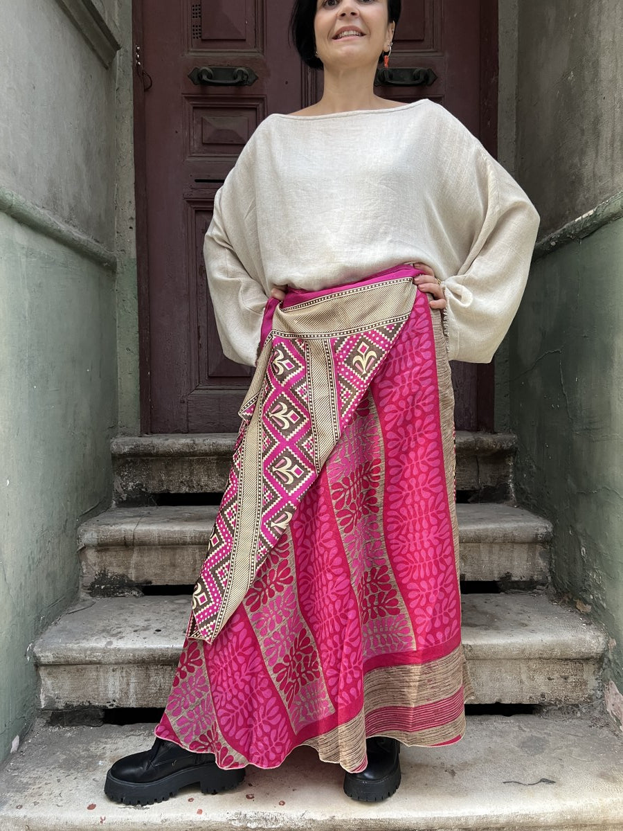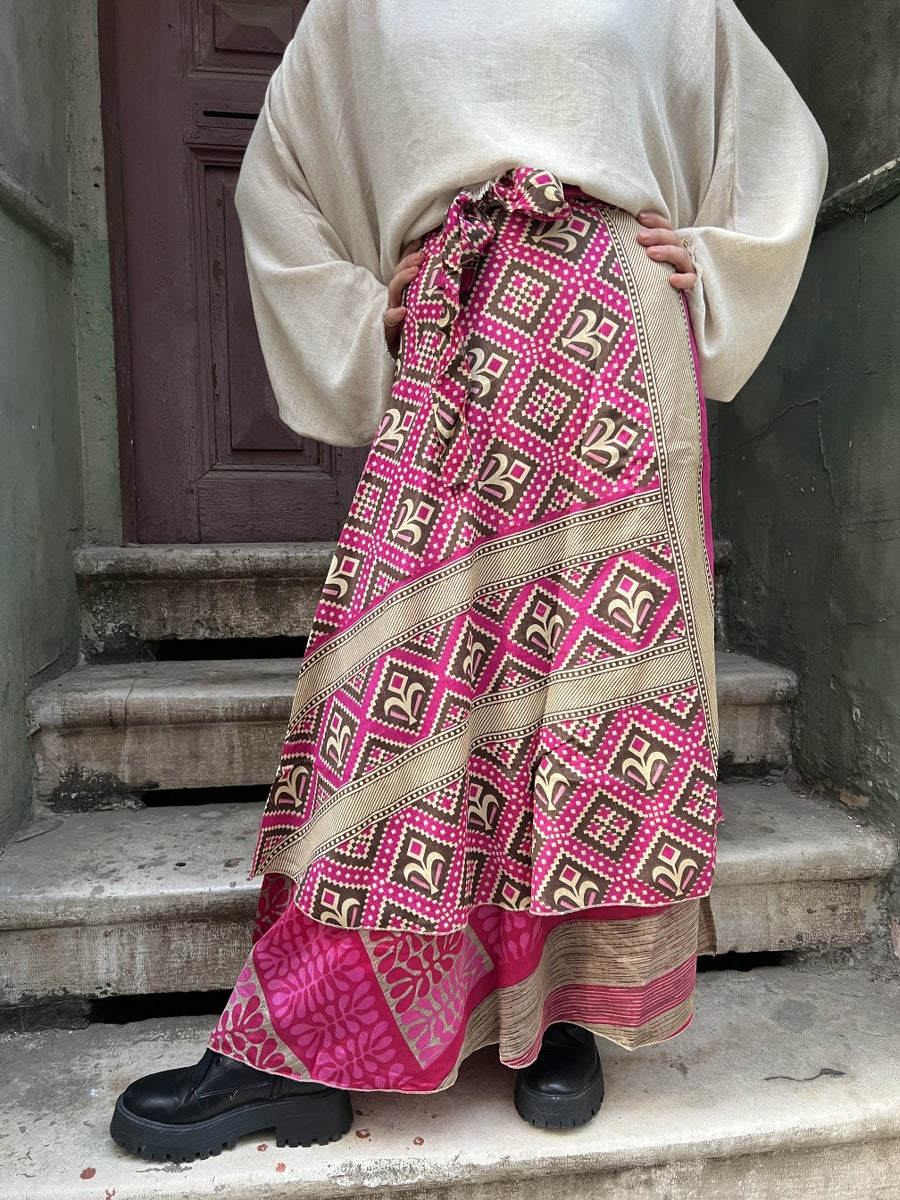 Bohem Nepal Çift Taraflı Desenli Bağlamalı İpek Etek