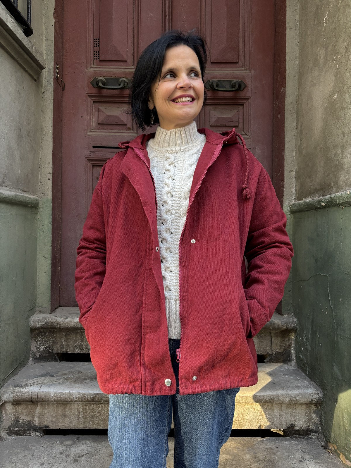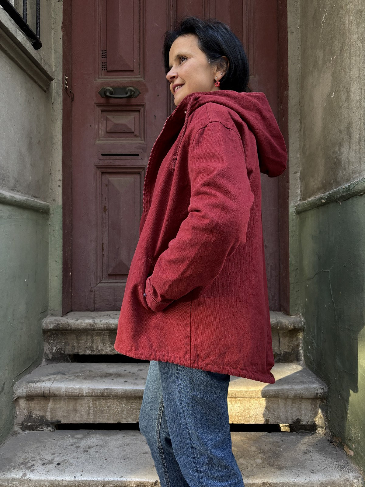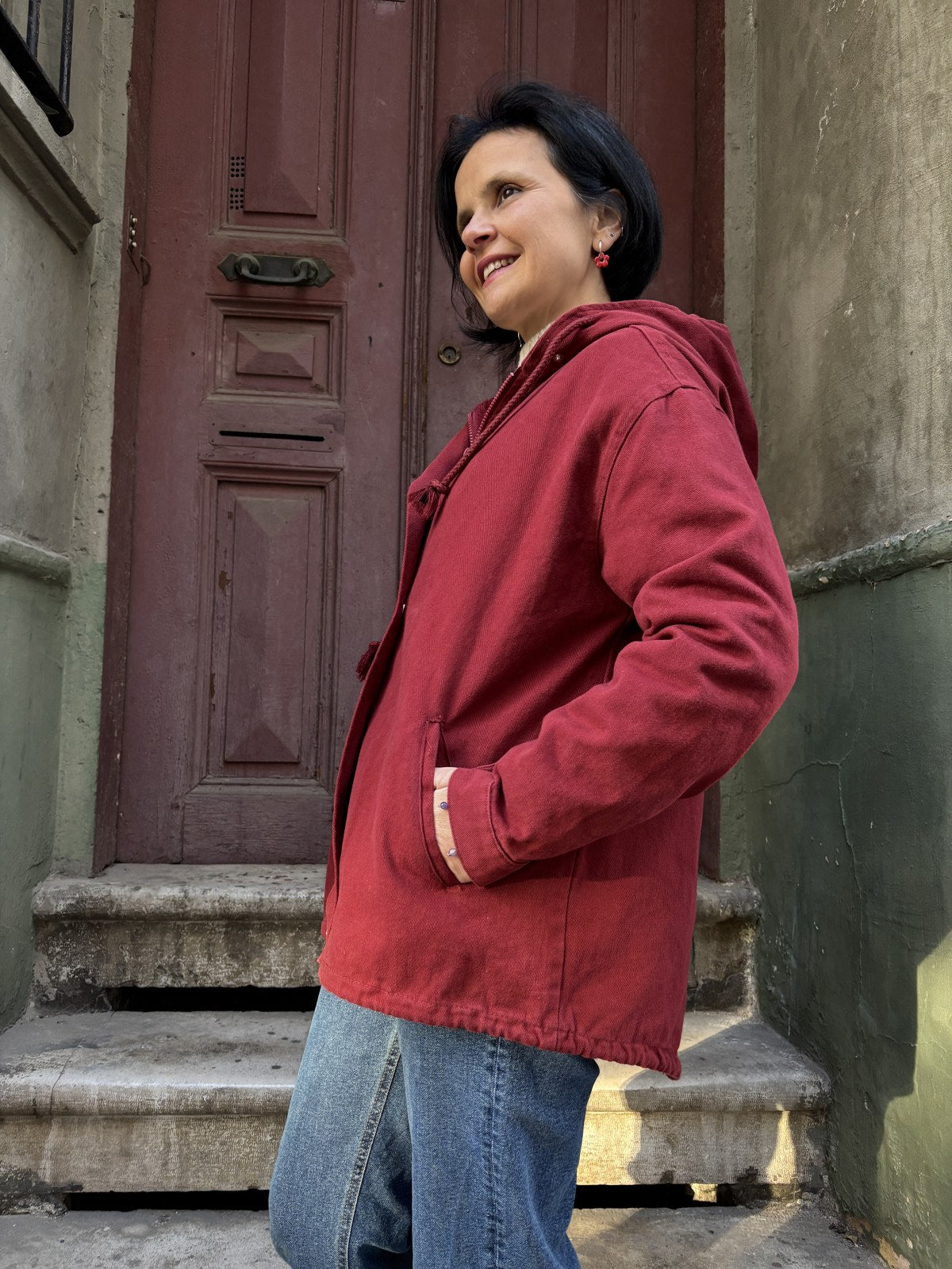 Bordo Kadın Kapüşonlu Kalın Kumaş Mont - %100 Pamuk, Rahat ve Şık Tasarım