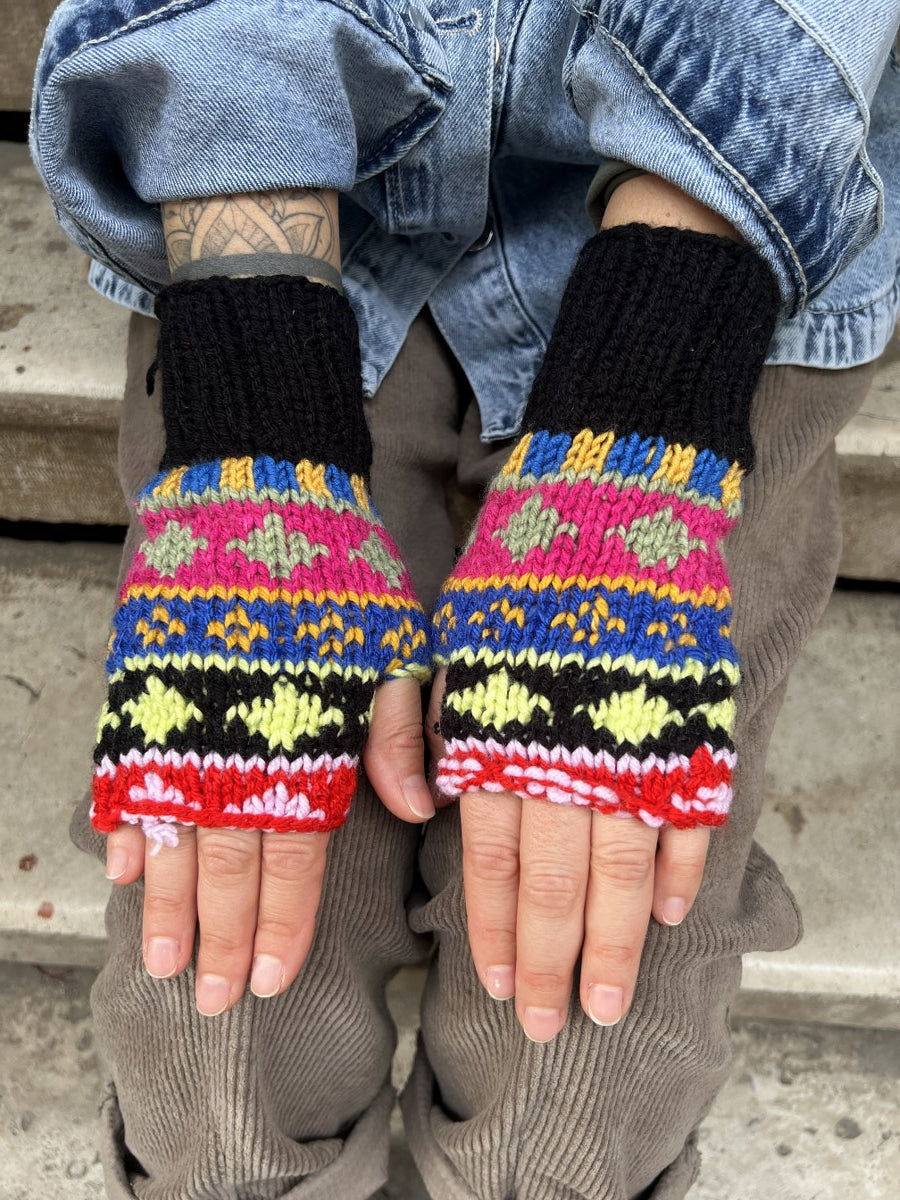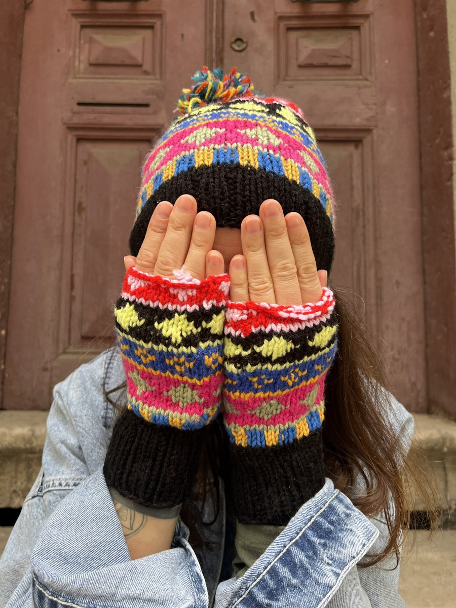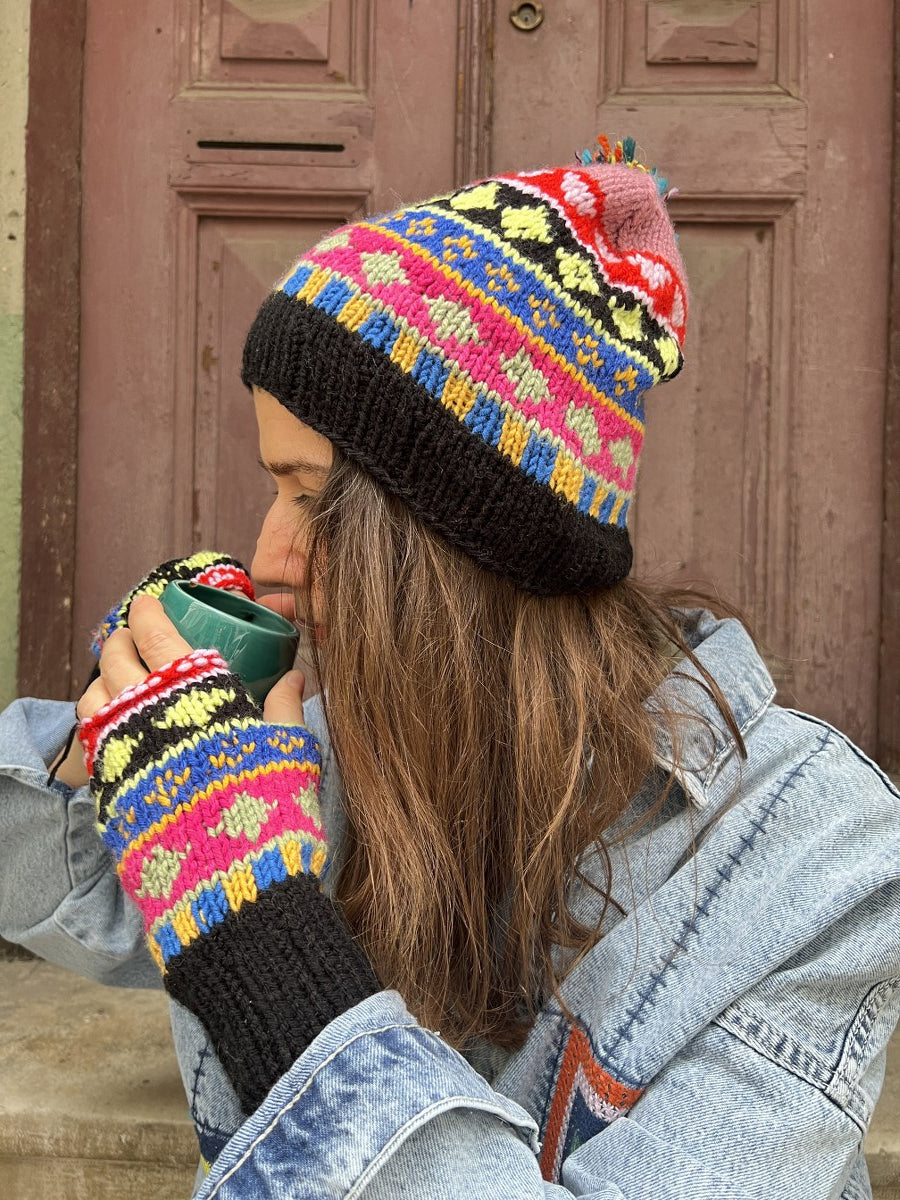 Bohem desenlerle süslenmiş bere ve parmak ucu açık eldivenler, soğuk günlerde konforlu bir kullanım sunar. Eldivenlerdeki açık parmak tasarımı, telefon kullanımı veya sıcak bir içeceğin tadını çıkarırken ellerinizi özgür bırakır. Renklerin dans ettiği bu setler, hem stilinizi tamamlayacak hem de kış aylarında size eşlik edecek benzersiz aksesuarlar olarak öne çıkıyor.