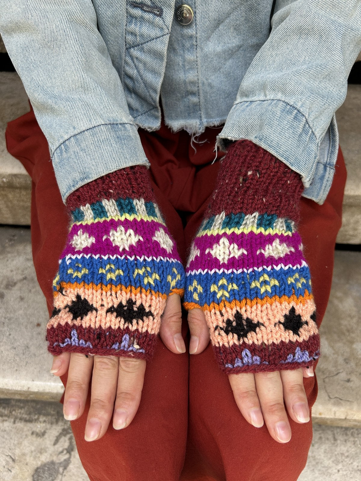 Etnik Desenli Bohem Bere ve Eldiven Takımı - El Yapımı Kışlık Aksesuar - Bordo