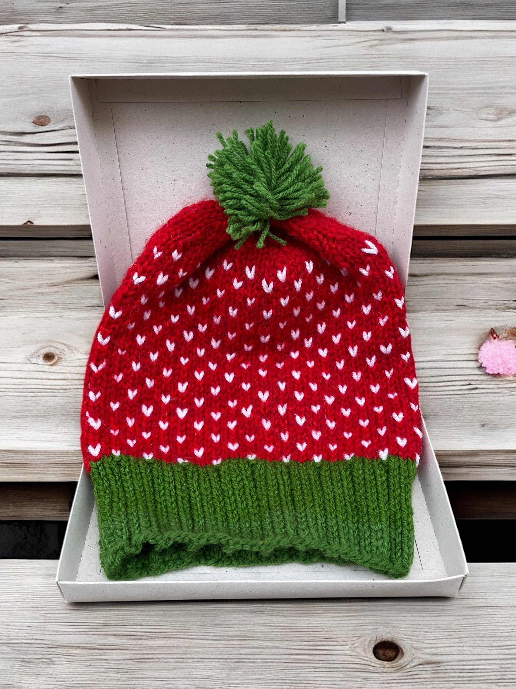 Hediye Kutulu Sevgililer Günü Kırmızı Yeşil Bere