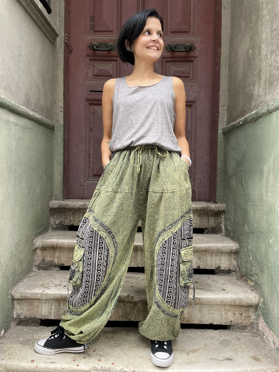 Kadın Nepal Taşlanmış Pantolon – Cepli, Rahat ve Bohem Tarz