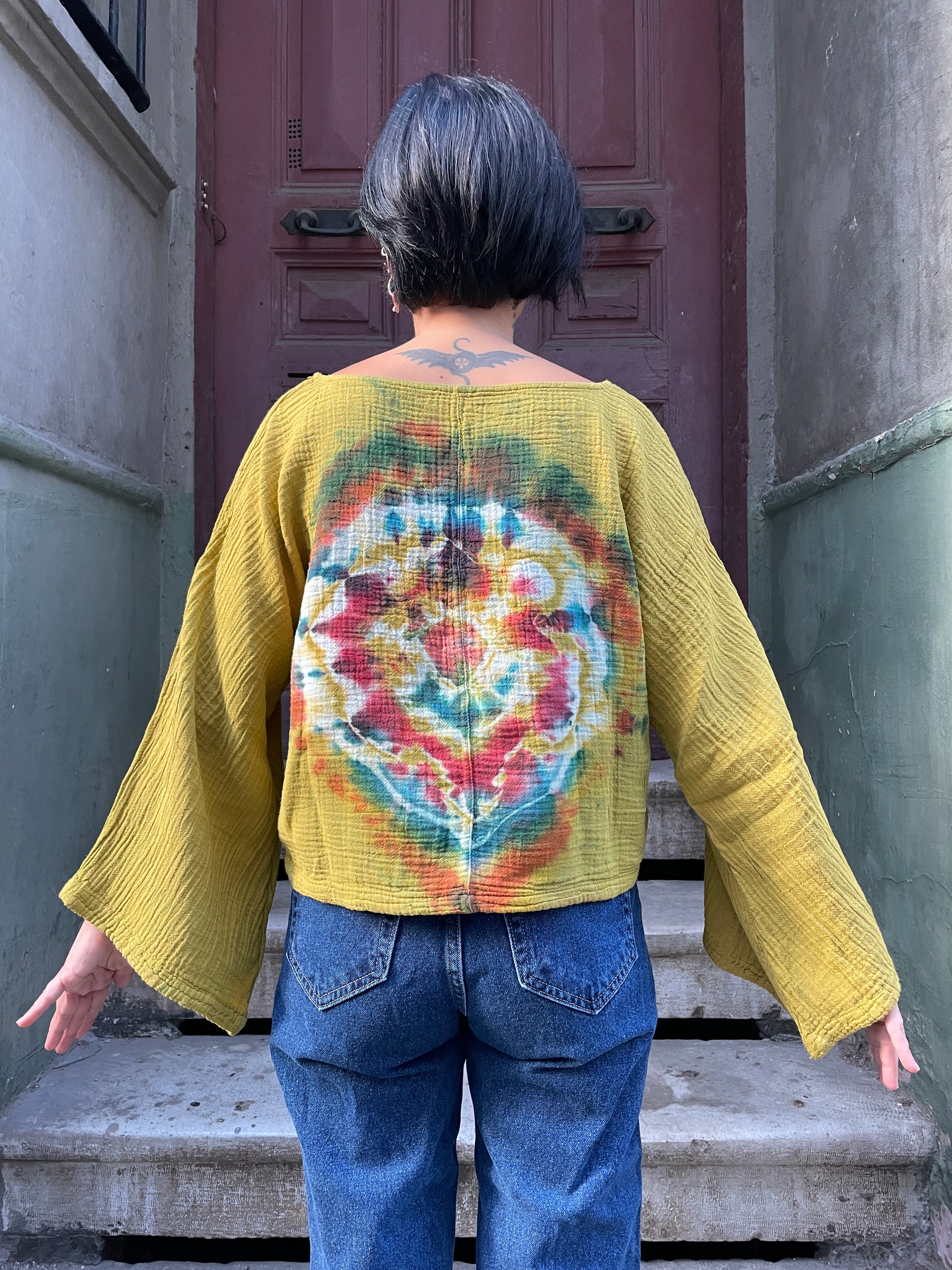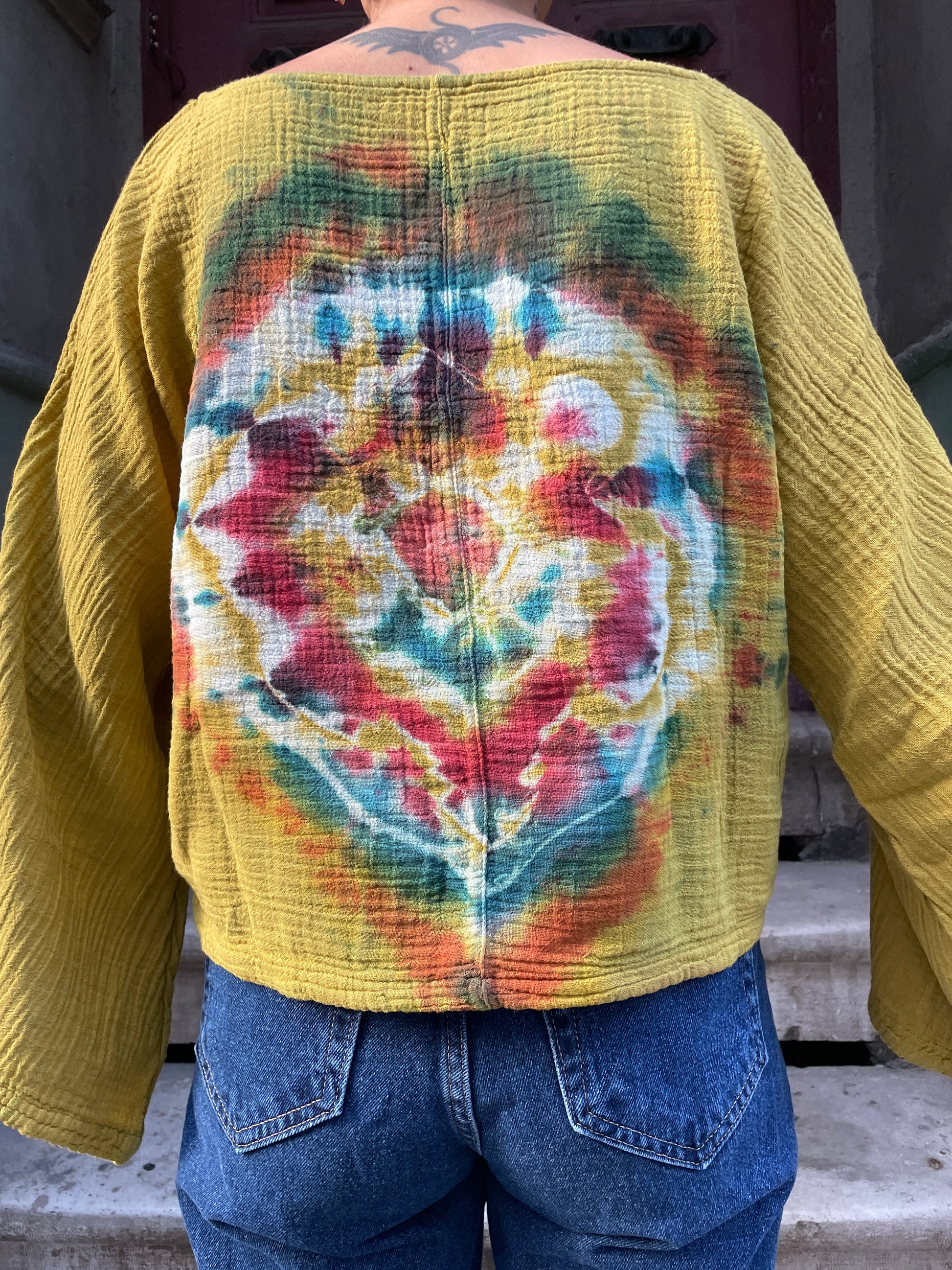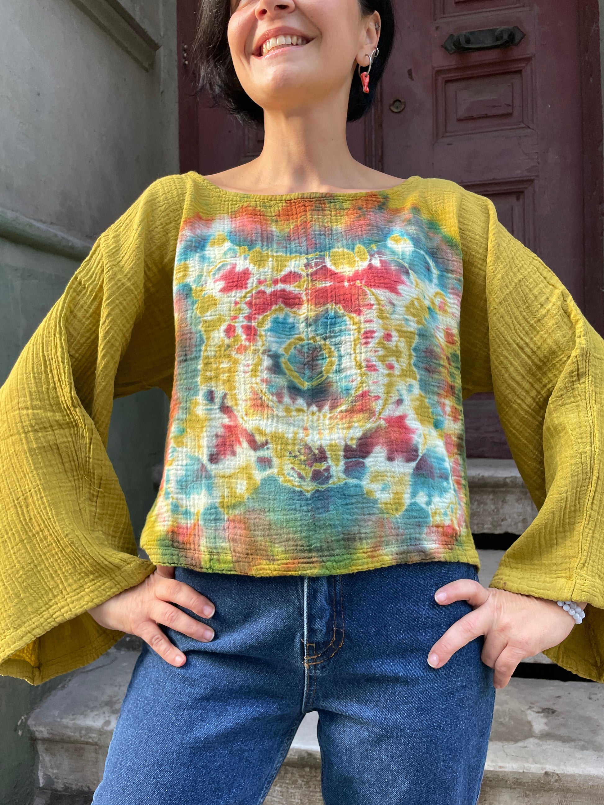 Batik Müslin Bluz – “Solara” | El Boyaması, Sıcak Renkli Bohem Tasarım