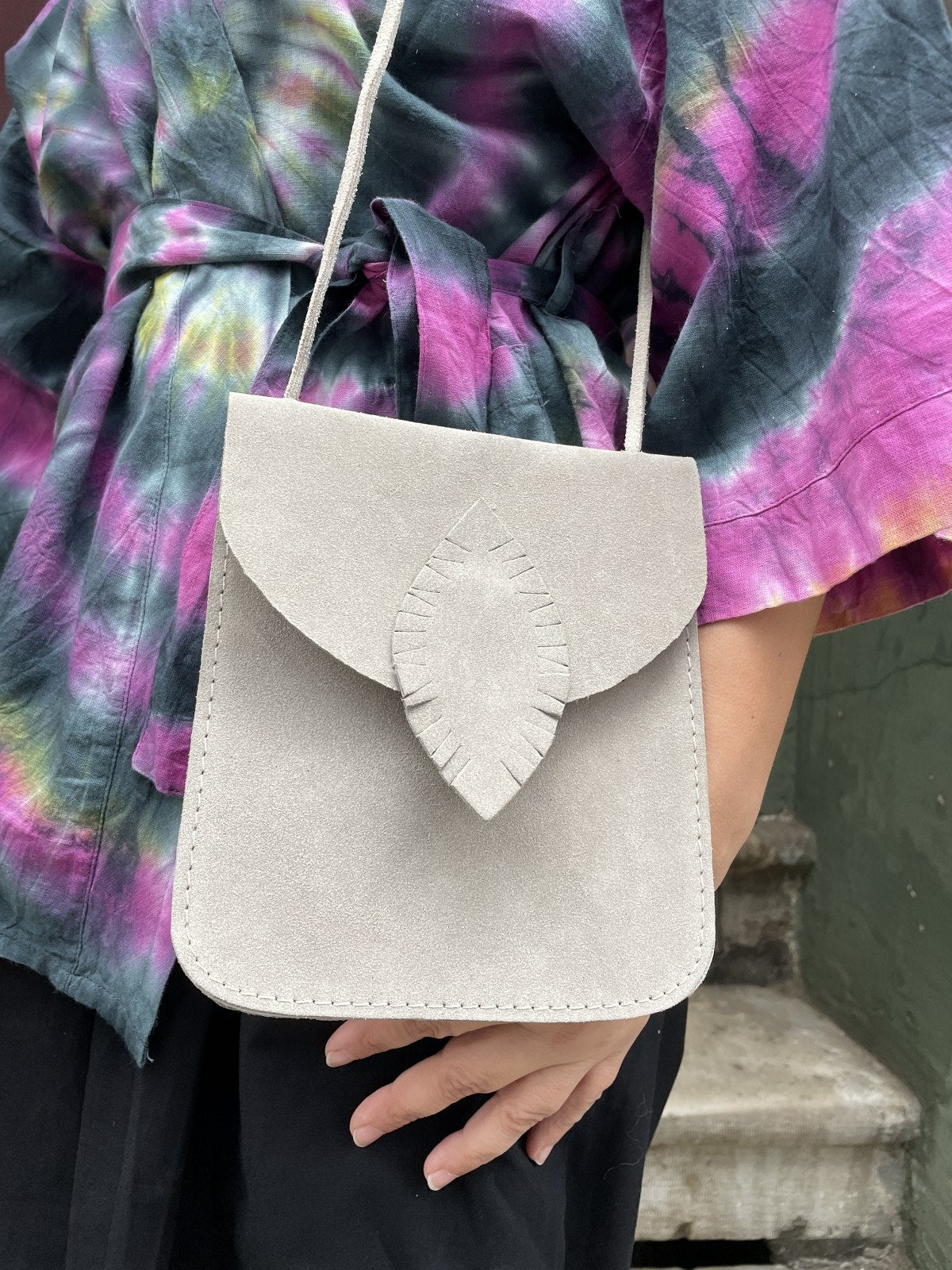 %100 el emeği ve deriden üretilen tasarım çantalarımız ile bohem tarzınızı tamamlayın. İçine rahatlıkla cep telefonu ve cüzdan sığmaktadır.