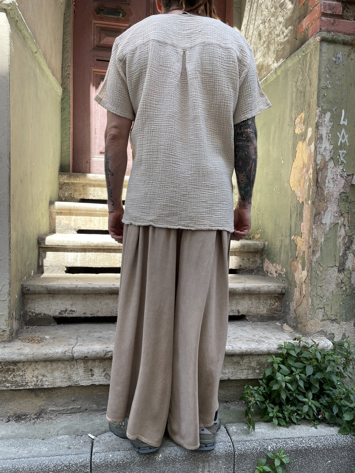 Kamp, sahil gezisi, günlük şehir stili ya da yoga sonrası rahatlığı için kullanabileceğiniz bu pantolon; sade ama karakterli bir görünüm yaratmak isteyen erkekler için tasarlandı.